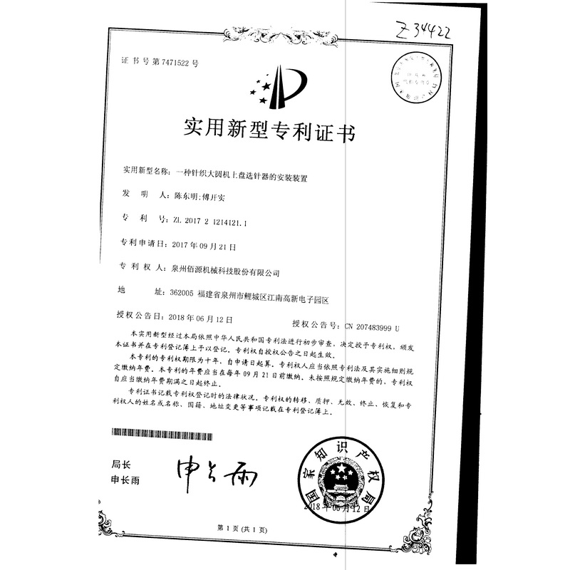 新型-一種針織大圓機上盤選針器的安裝裝置