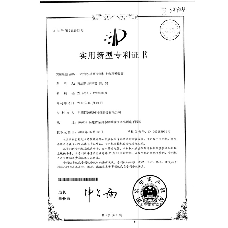 新型-一種針織單面大圓機上盤頂緊裝置