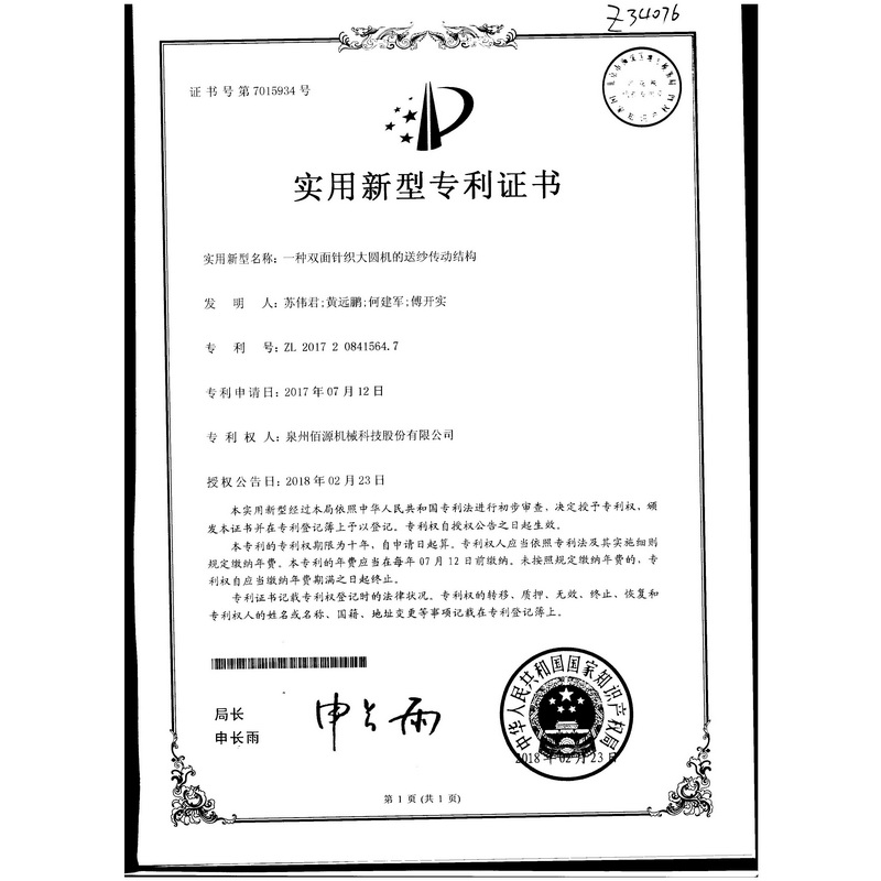 一種高路數(shù)雙面棉毛機
