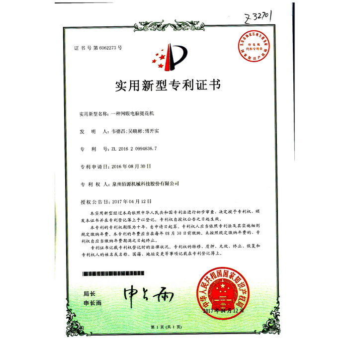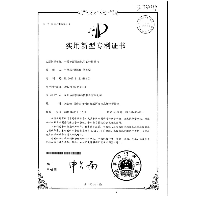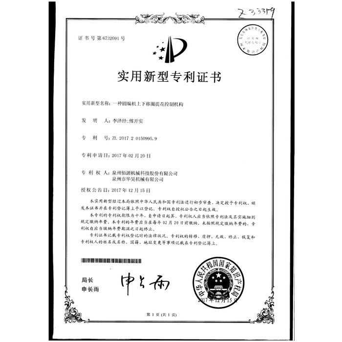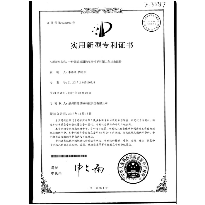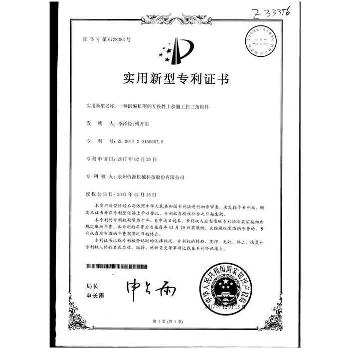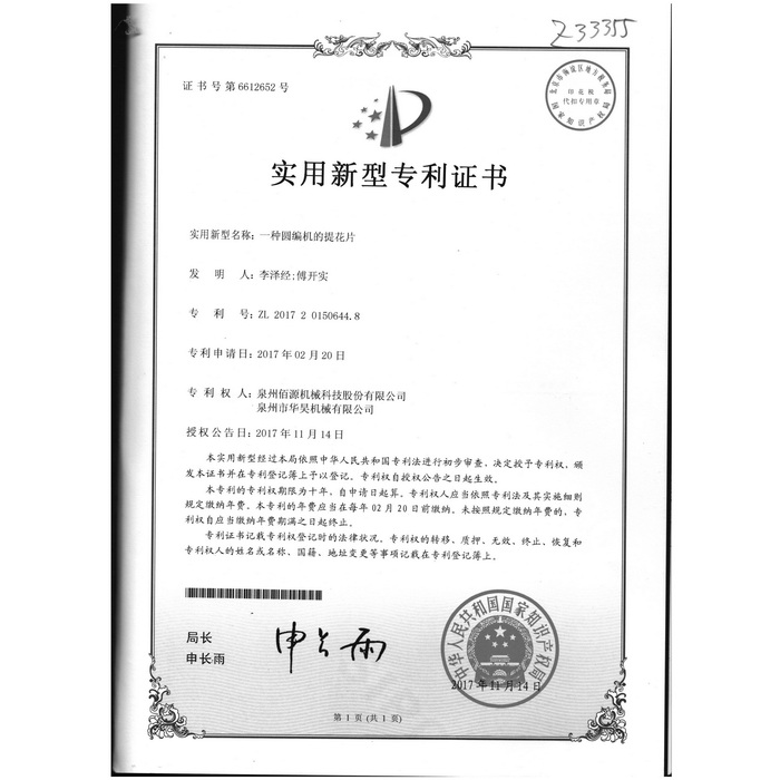 新型專利-一種圓編機(jī)的提花片